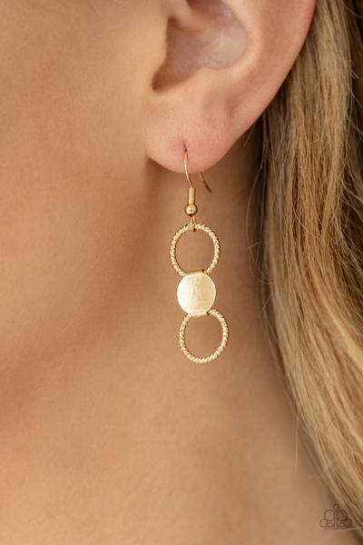 An interlocking net of textured gold rings and reflective gold discs link into a dramatically netted fringe below the collar. Features an adjustable clasp closure.